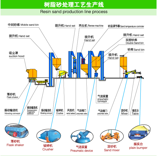 樹脂砂是以樹脂為粘結劑配置的型砂,舊砂再生就是大限度去除砂粒表層的粘結劑膜,調整沙粒表面,使其十分經濟的代替新砂使用。舊砂再生回用,可以節(jié)省新砂消耗以及為丟舊砂所需的運輸費用等,而且再生砂粒均勻,表面光滑,熱穩(wěn)定好,有利于提高鑄件質量,尤其是樹脂砂舊砂再生回用時,可減少樹脂砂加入量,降低了樹脂砂的成本,還能減少因排出的廢砂造成的環(huán)境污染。
